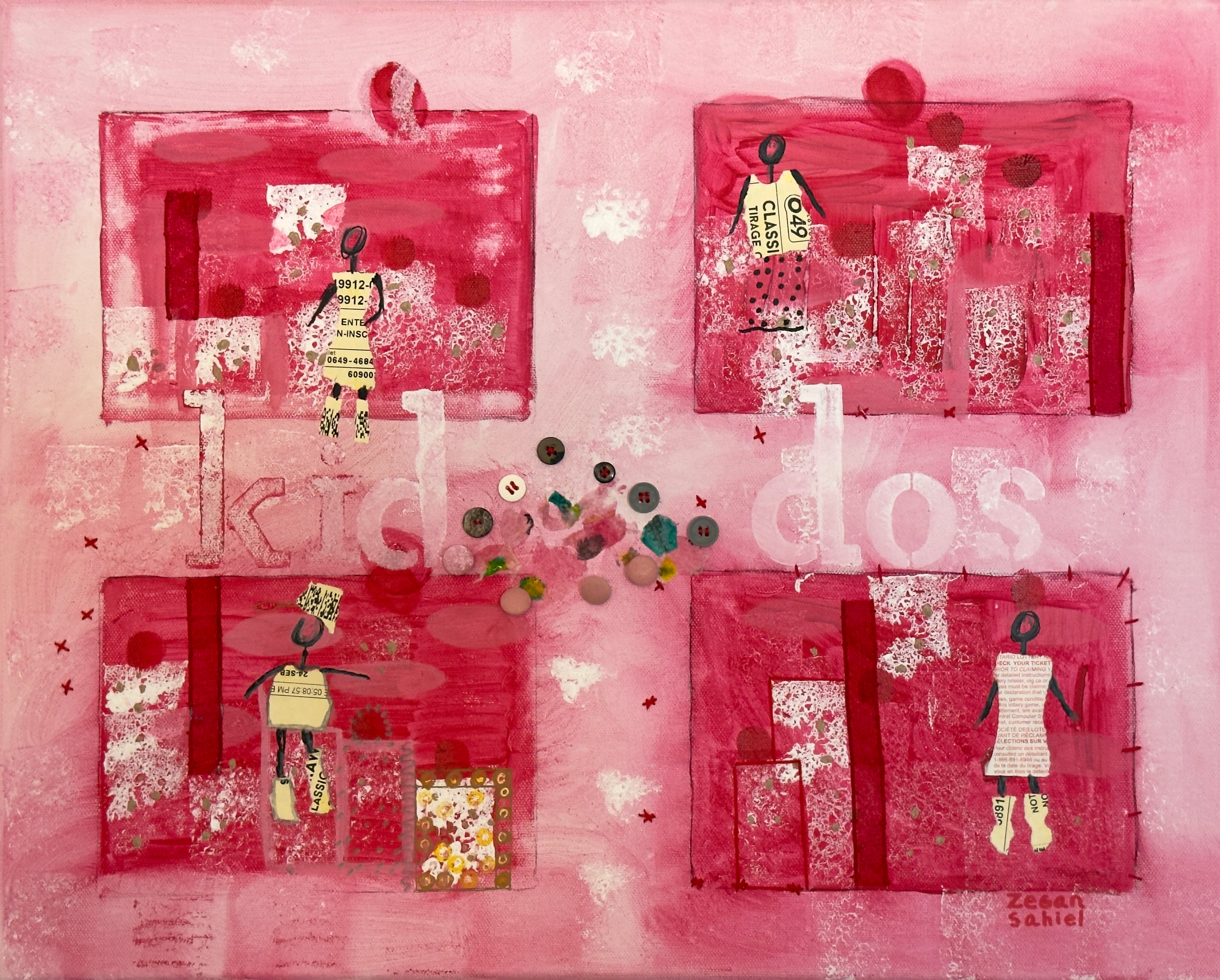 16" x 20" Acrylic, fabric and buttons on canvas